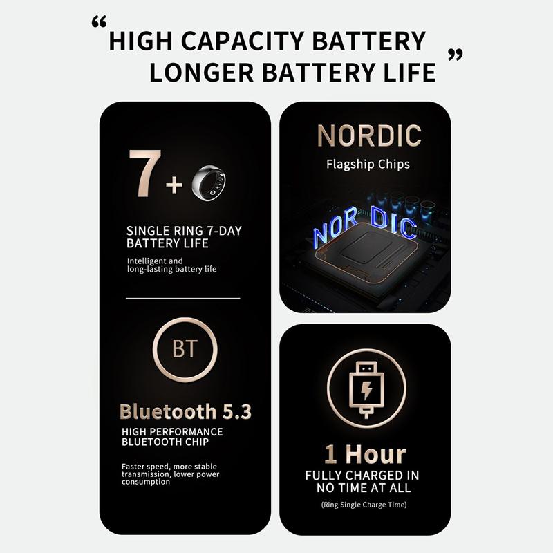 Cette bague intelligente combine le suivi de la santé, le suivi de la condition physique et la connectivité intelligente dans un design léger et durable. Avec une étanchéité IP68, elle offre des performances fiables pour un mode de vie actif.