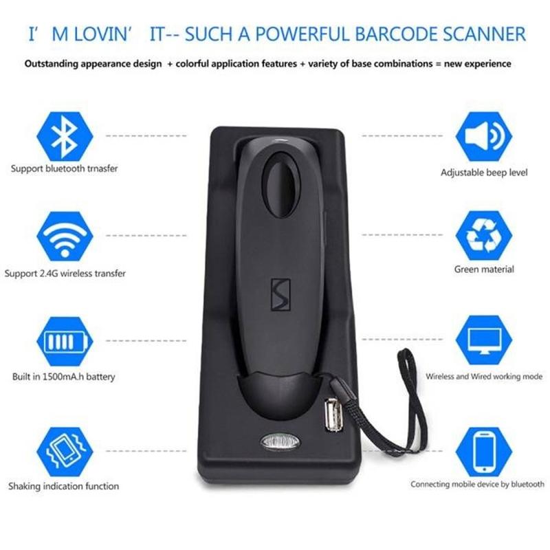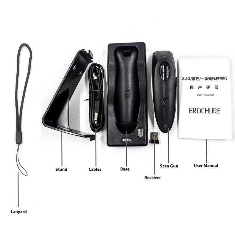 Lecteur de codes-barres 2D sans fil R40 - Lecteur de codes QR Bluetooth 4.0 et 2.4GHz avec base de chargement, 1500 scans/s