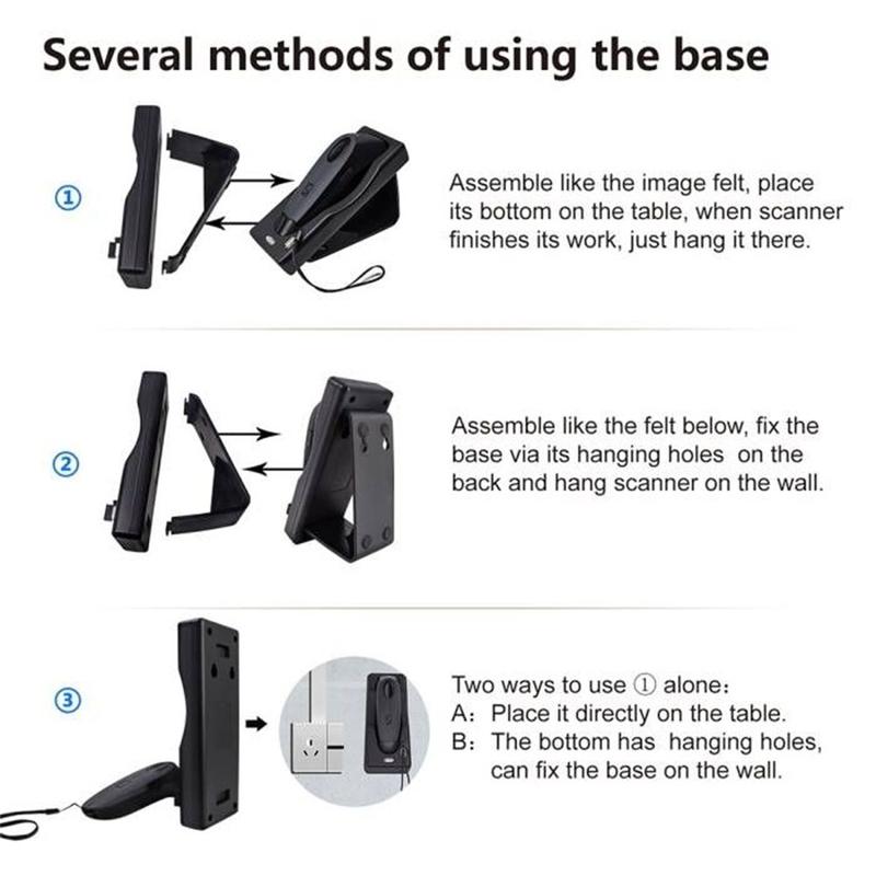 La batterie de 1000mAh offre jusqu'à 20 heures d'utilisation continue, tandis que la base de chargement incluse prend en charge la numérisation à main levée et à poste fixe.