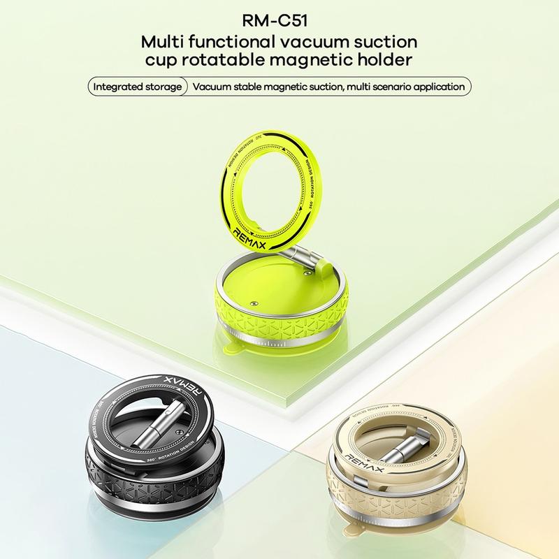 REMAX RM-C51 Support magnétique de téléphone à 3 axes - Support à ventouse pour la voiture, la maison et les voyages