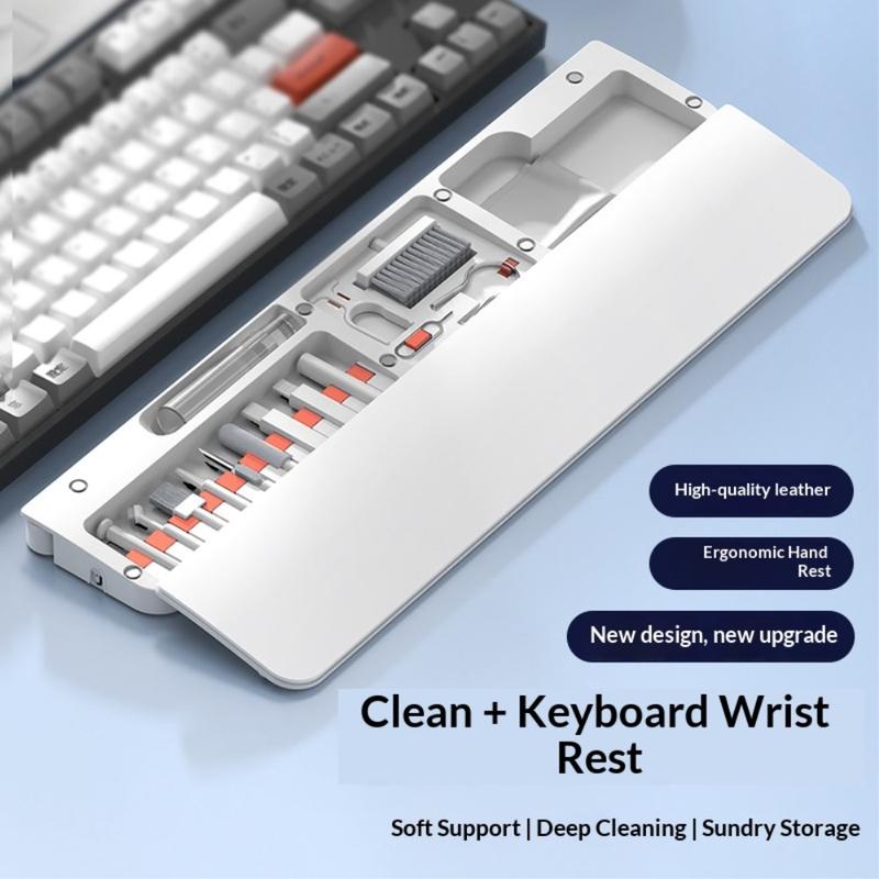 • Repose-poignets multifonctionnel pour clavier avec 22 kits de nettoyage et support de téléphone