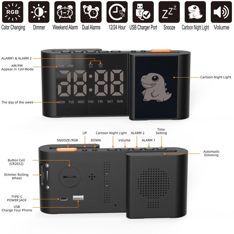 Le réveil EN8837-C RGB ne sert pas seulement à chronométrer, mais aussi à améliorer l'humeur et à économiser de l'espace. Son éclat RGB, ses deux alarmes et son design inspiré des dessins animés apportent à la fois amusement et fonctionnalité à votre routine quotidienne.