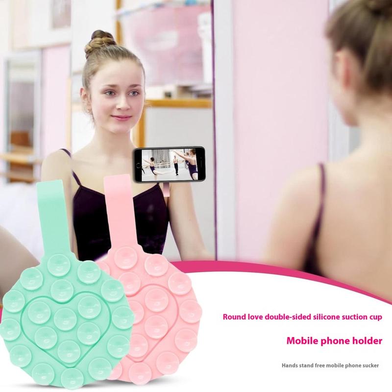 RK-X18/19 Porte-téléphone à ventouse en silicone en forme de cœur - Support détachable des deux côtés