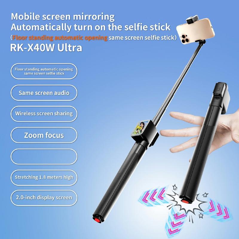 RK-X40W Ultra Smartphone Selfie Stick & Tripod with Auto Pop-Open Stand, 2.0-Inch Screen Mirroring, WiFi & Bluetooth