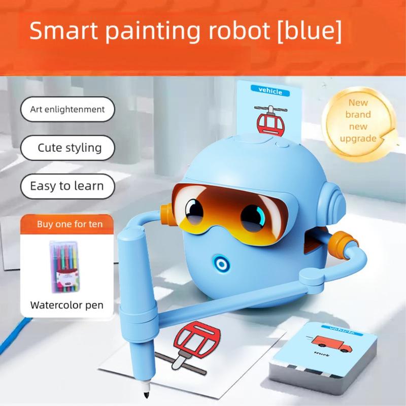 Robot dessinateur intelligent pour enfants avec 100 cartes de dessin - Bleu