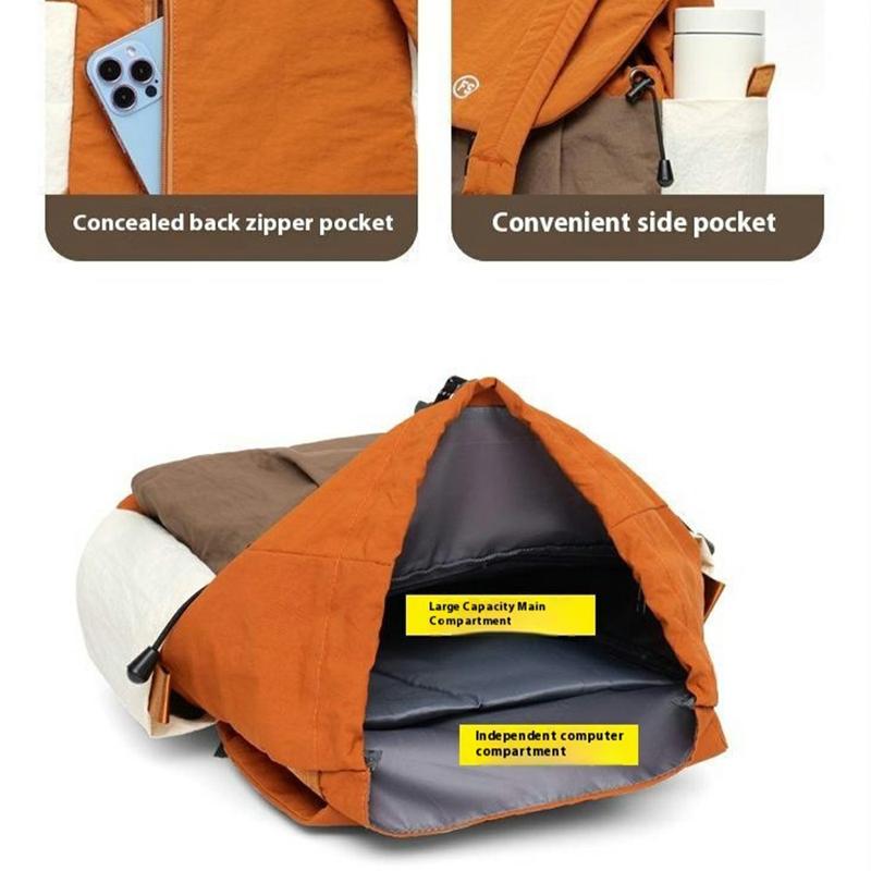Sac à dos en toile Vintage Color Block de grande capacité - Orange / Khaki
