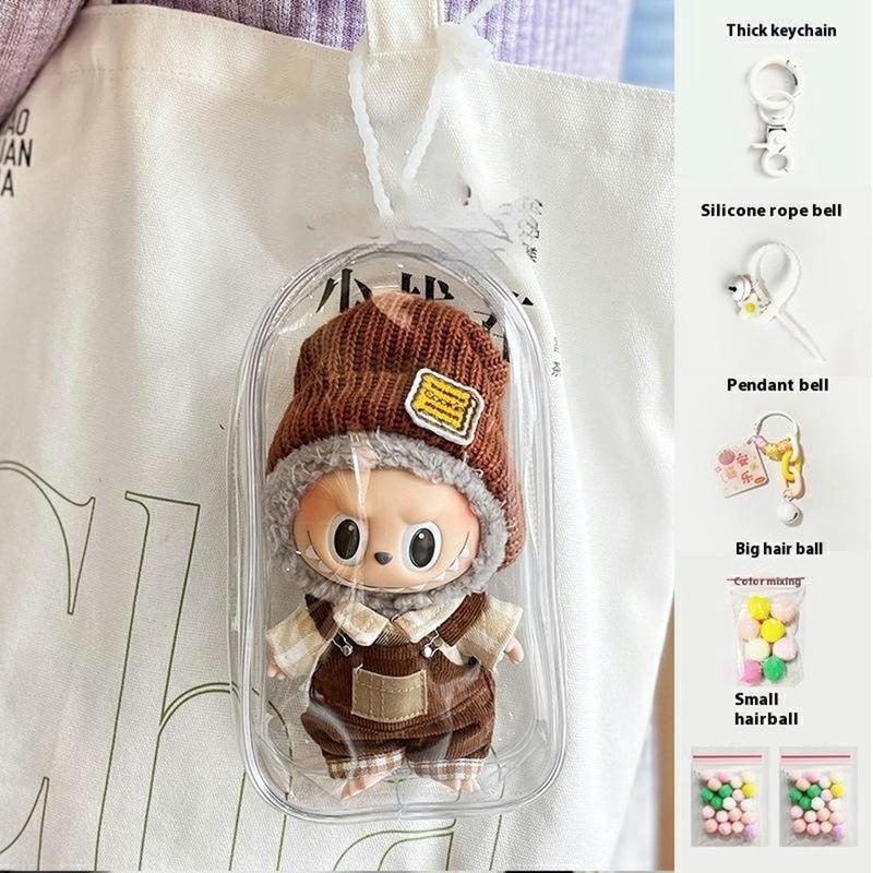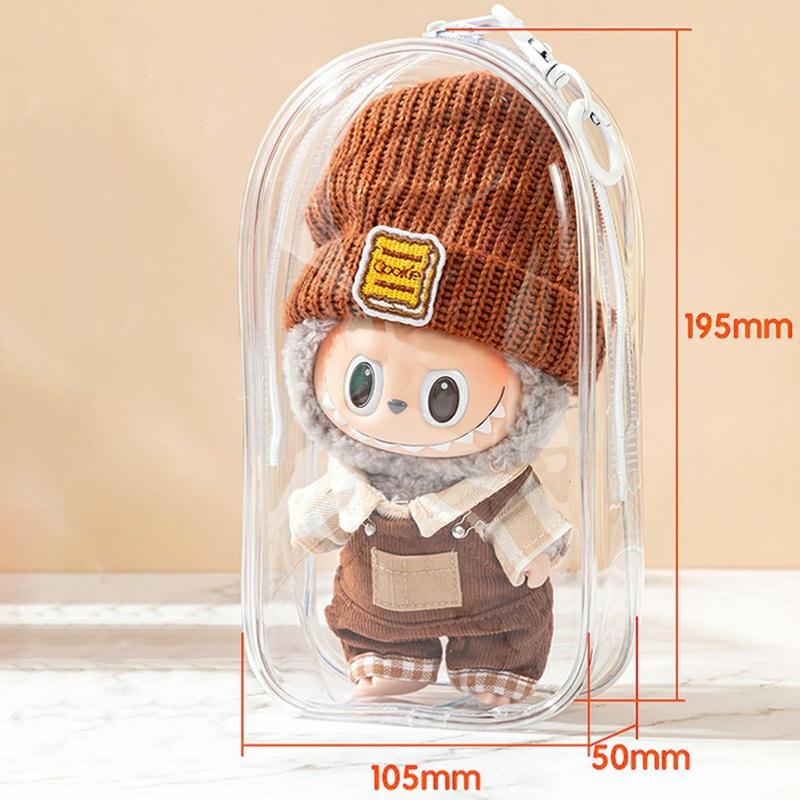 Sac de rangement en PVC avec porte-clés pour peluches et figurines Labubu de 17cm - Étui de rangement portable à l'épreuve de la poussière