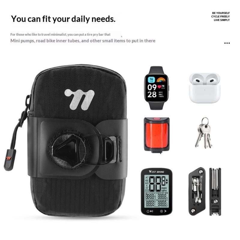 • West Biking YP0707431 Sacoche de selle de vélo 0.2L - Pochette de rangement arrière à fermeture rapide et autobloquante pour vélos de route et VTT