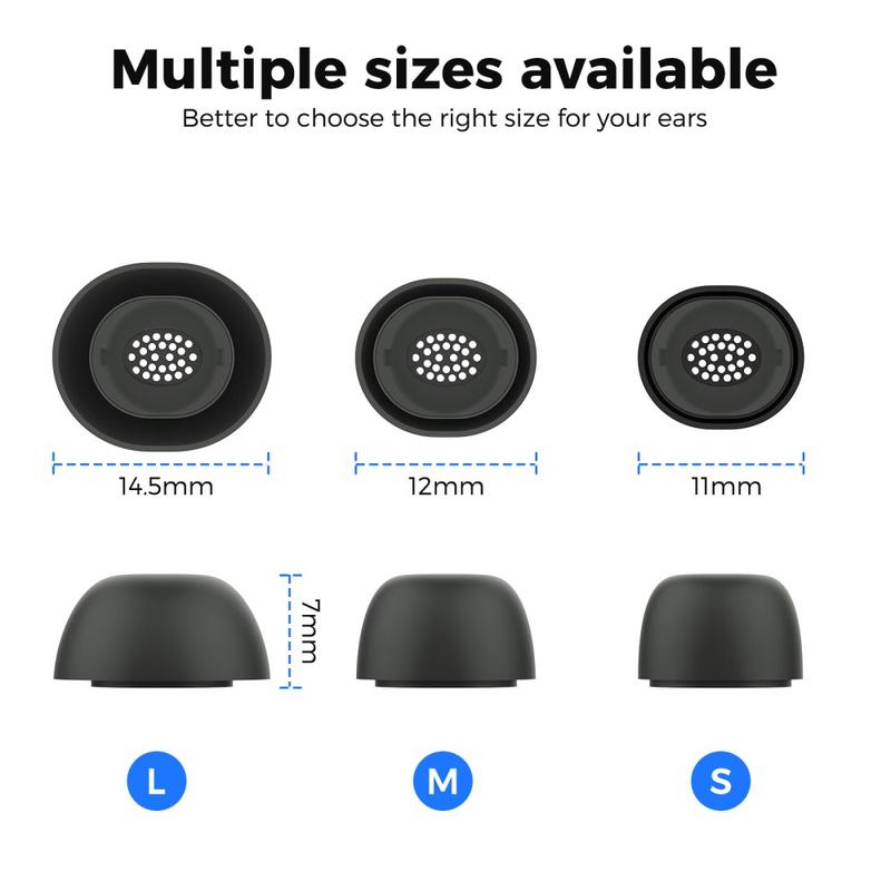 - Trois tailles (S / M / L) s'adaptent aux conduits auditifs de 10 mm à 14 mm, garantissant des sessions d'écoute plus longues sans points de pression.