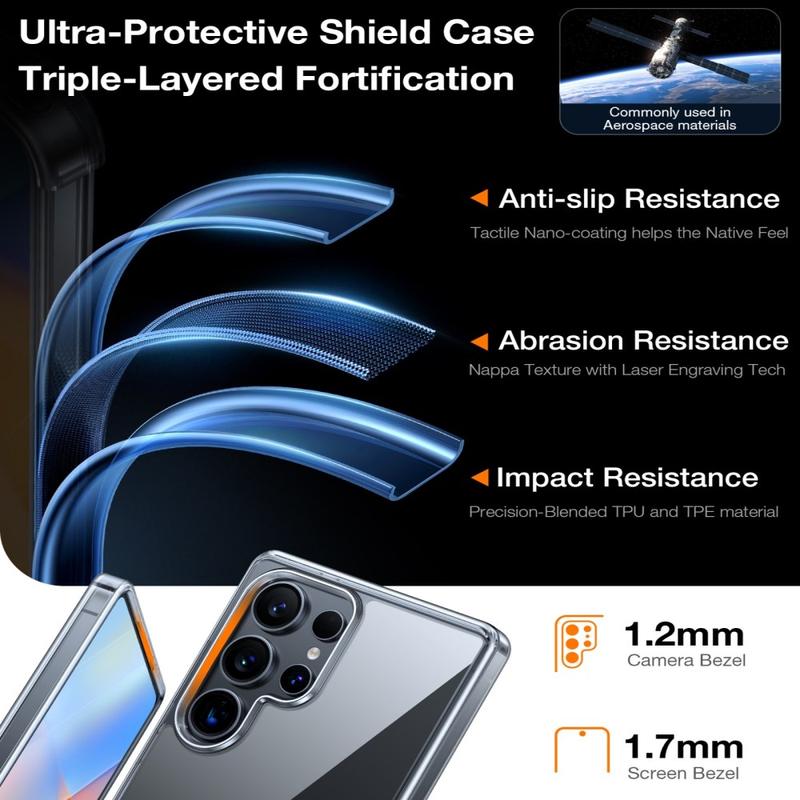 Doté d'une structure interne de dispersion des chocs et d'un pare-chocs en TPU renforcé, l'étui permet de réduire la force des chutes et des impacts accidentels. Les zones à coussin d'air intégrées offrent une protection supplémentaire pour une utilisation quotidienne sans ajouter d'encombrement inutile.