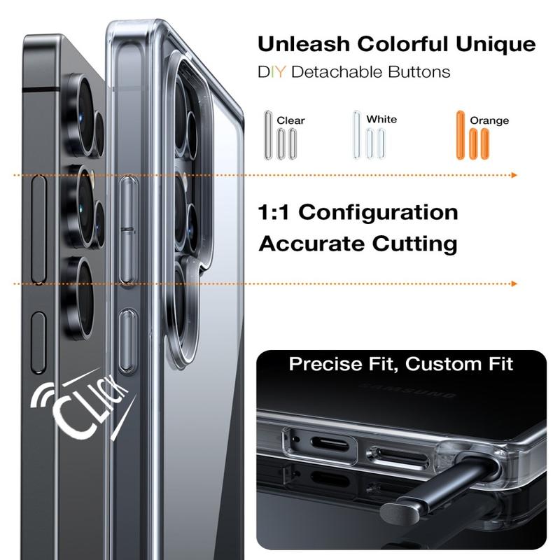 L'étui comprend trois jeux de boutons interchangeables, ce qui vous permet de personnaliser le look de votre Samsung Galaxy S26 Ultra. Changez facilement les boutons pour les assortir à votre style, votre tenue ou votre humeur et créez une apparence unique et personnalisée.