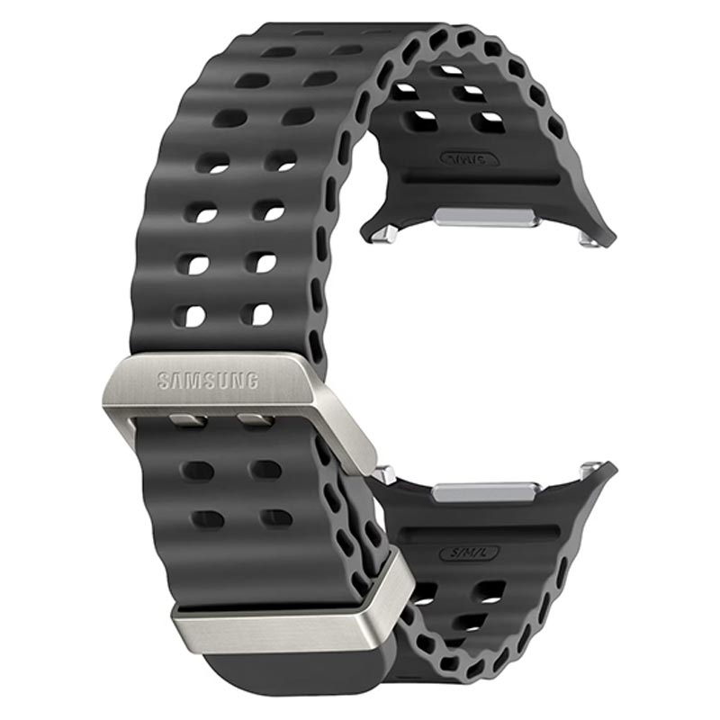 Conçu pour la Samsung Galaxy Watch Ultra, ce bracelet marin Samsung authentique associe une boucle en titane anticorrosion à un bracelet HNBR à profil ondulé qui évacue l'eau et sèche en quelques minutes - idéal pour la natation, les entraînements de triathlon et le port quotidien.
