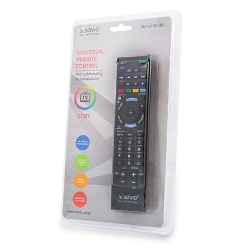 La télécommande universelle Savio RC-08 est conçue pour simplifier votre expérience télévisuelle. Cette télécommande facile à utiliser est prête à l'emploi, sans besoin de programmation, ce qui en fait la solution parfaite pour contrôler votre téléviseur Sony avec facilité et commodité.