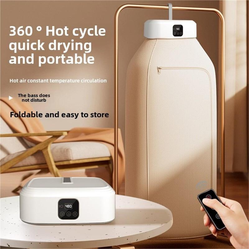 Sèche-linge pliable avec circulation d'air chaud à 360° - Séchage à 60°C + stérilisation par lumière bleue UV, chauffage céramique PTC, charge de 10 kg, minuterie 1 à 8 h, télécommande