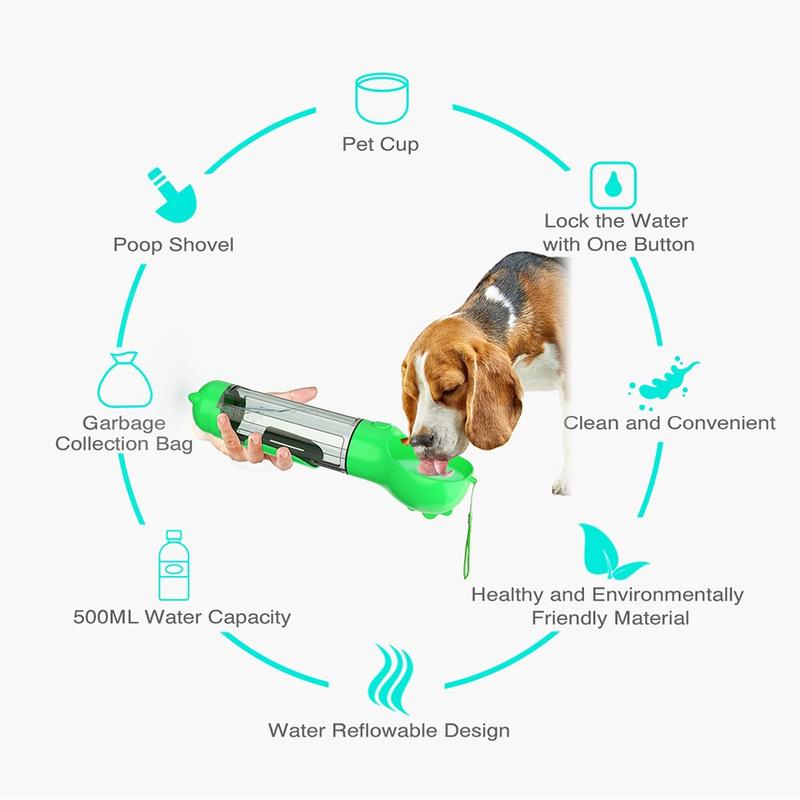 • SH-01 Bouteille d'eau portable multifonctionnelle pour chien avec distributeur de sacs à crottes - 500ml, sans BPA