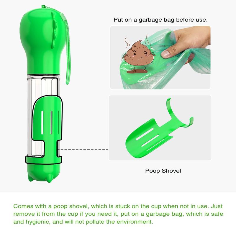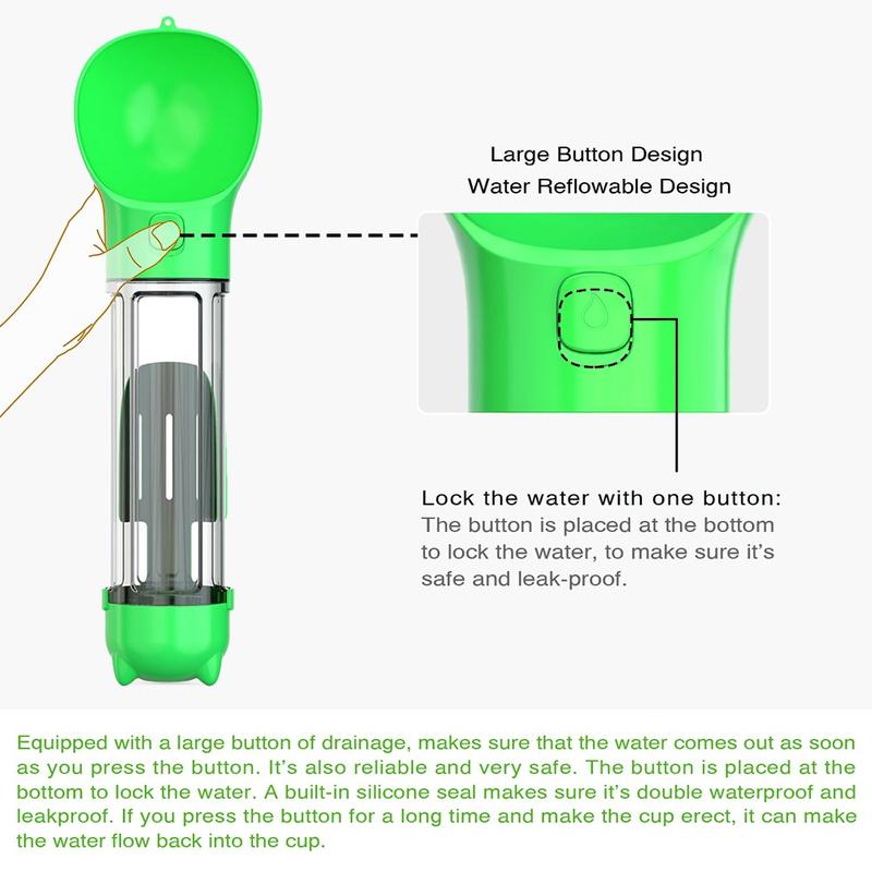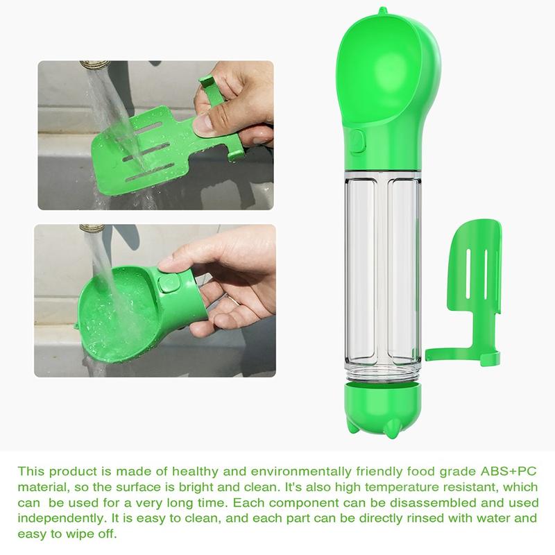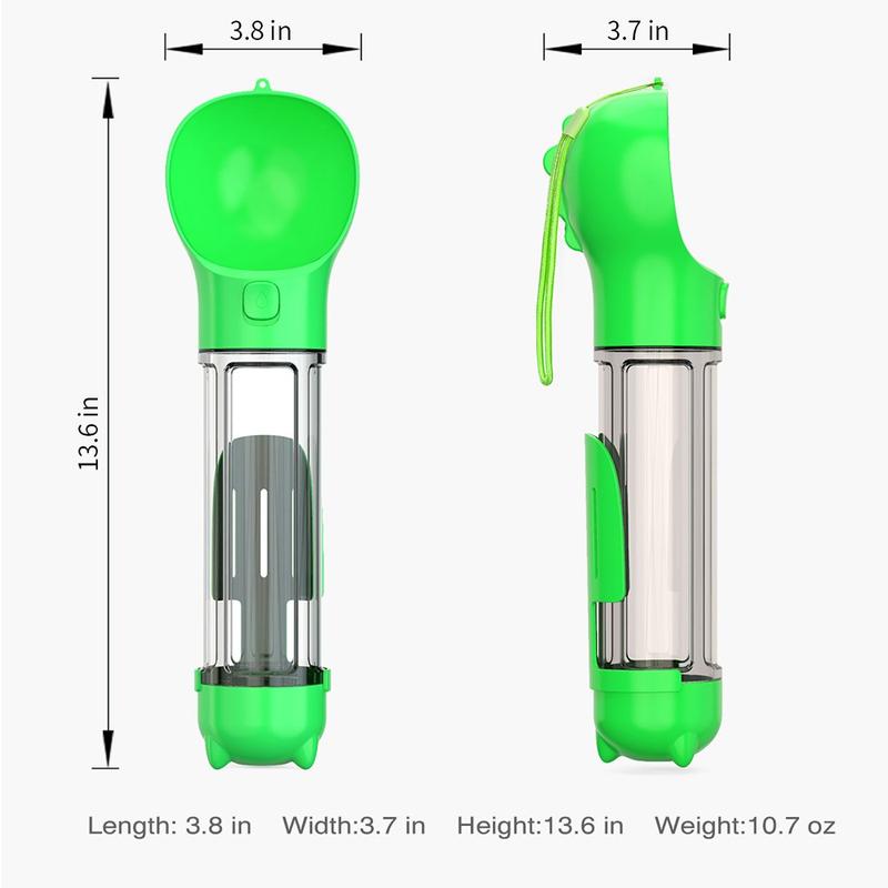 SH-01 Bouteille d'eau portable multifonctionnelle pour chien avec distributeur de sacs à crottes - Vert
