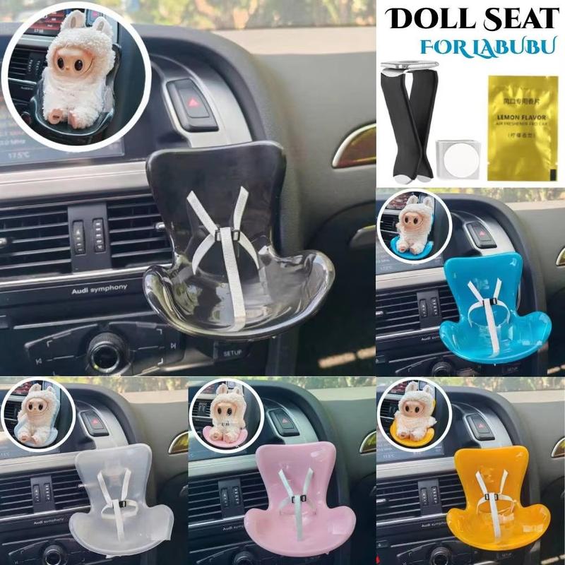 Siège auto de sécurité Labubu Mini - Support de ventilation de voiture à clipser pour figurines en peluche de 17cm, ceinture de sécurité intégrée, décoration intérieure