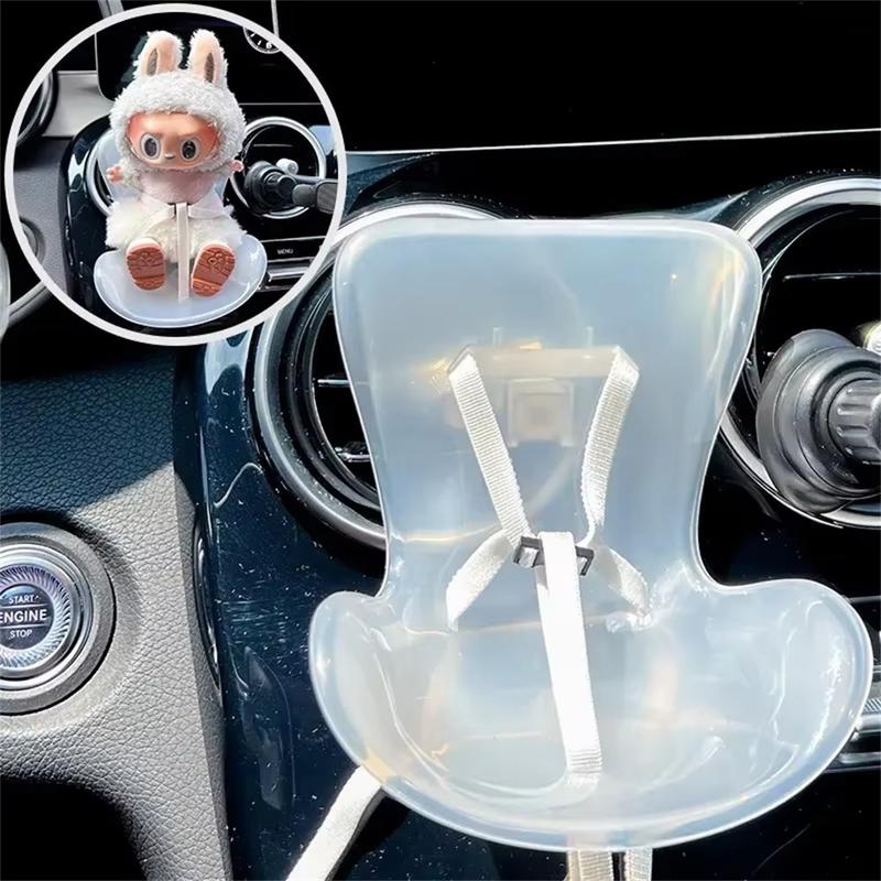 Siège auto de sécurité Labubu Mini - Support de ventilation de voiture à clipser pour figurines en peluche de 17cm, ceinture de sécurité intégrée, décoration intérieure