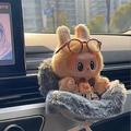 Siège de sécurité en fourrure pour poupée Labubu 15-17cm - Support rose à clipser avec sangle de ceinture de sécurité, décoration intérieure