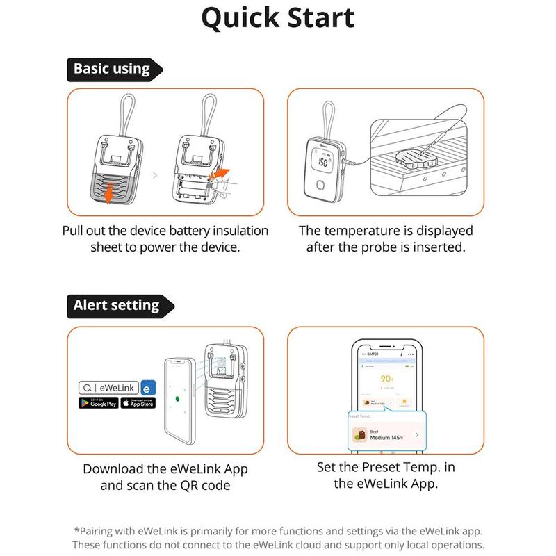 SONOFF BMT01 Thermomètre à viande Bluetooth / Contrôle de la température en temps réel pour la cuisson et le barbecue