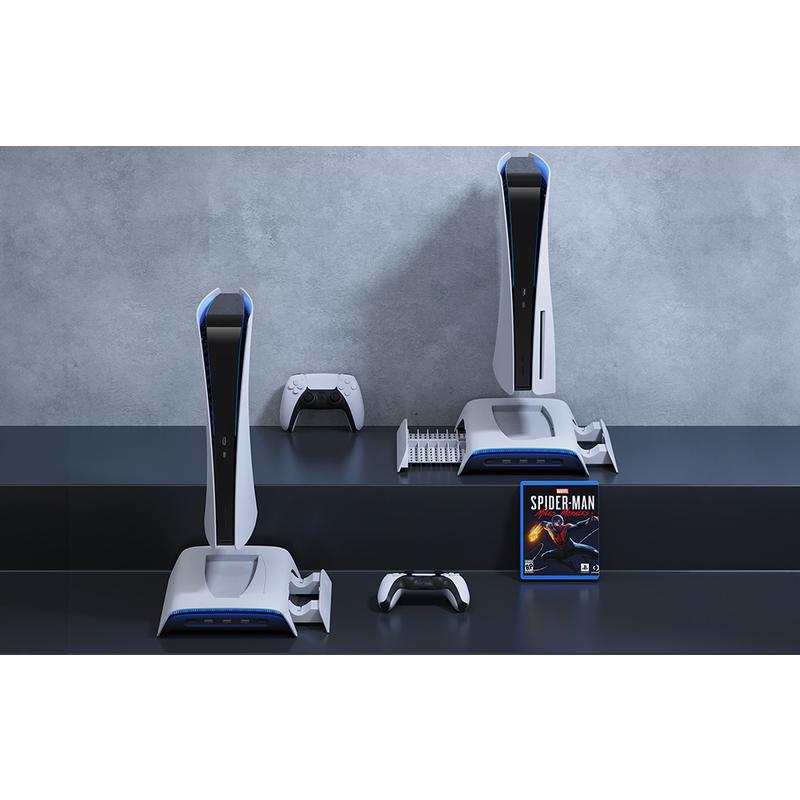 Utilisez le support Kiwi Home PB01 dans votre chambre à coucher pour recharger tranquillement votre manette pendant la nuit ou placez-le au centre de votre salon pour mettre en valeur son éclairage RGB captivant tout en refroidissant votre PS5. Les emplacements intégrés pour les disques de jeu permettent de maintenir une zone de jeu sans encombrement, ce qui en fait le complément idéal pour tout joueur sérieux à la recherche d'une solution tout-en-un.