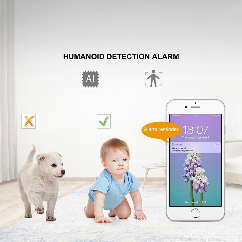 - Détection des humanoïdes par l'IA + suivi automatique, alertes push en cas de mouvement, sensibilité réglable