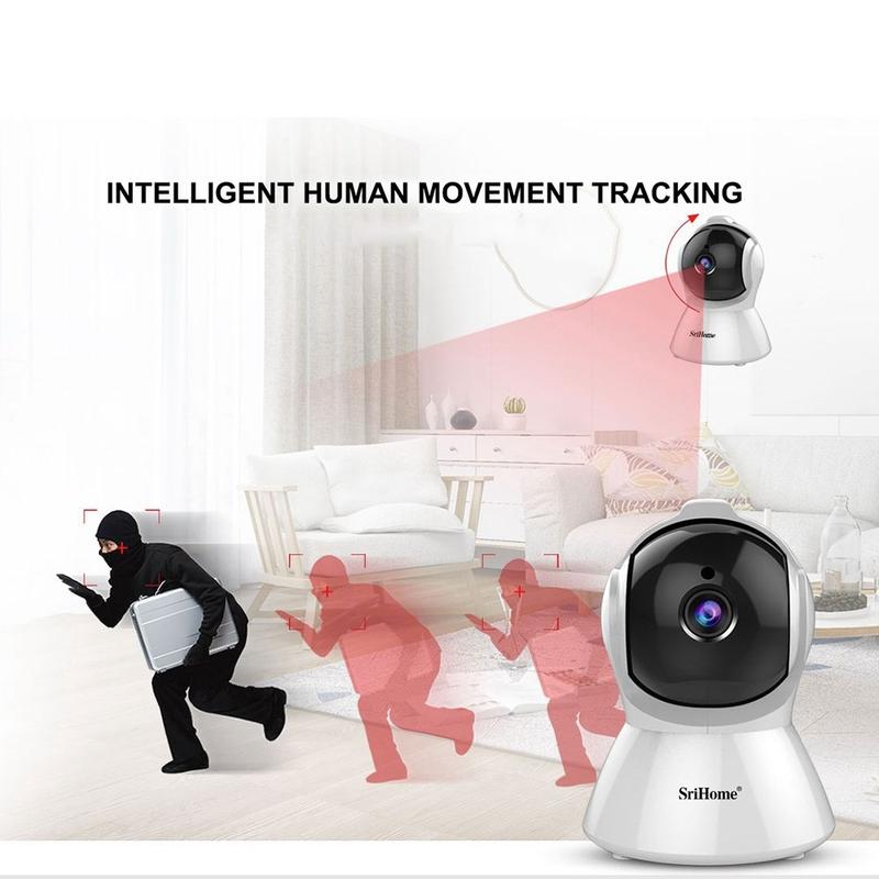 SriHome SH025 AI Caméra de sécurité WiFi avec audio bidirectionnel et vision nocturne - 1080P