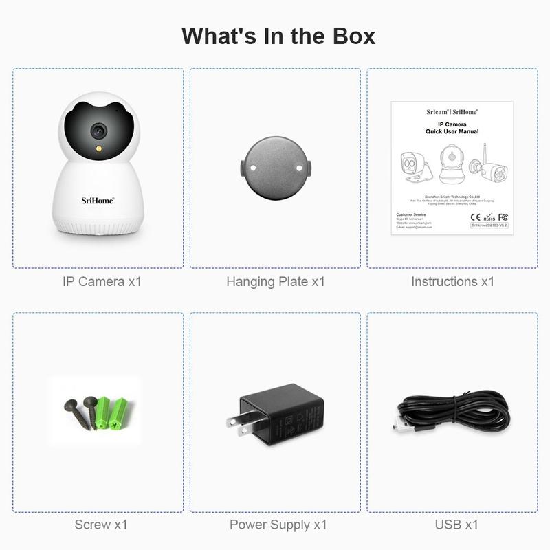 SriHome SH036 3MP Wi-Fi Smart PTZ Caméra - EU Plug - Voir, entendre et protéger