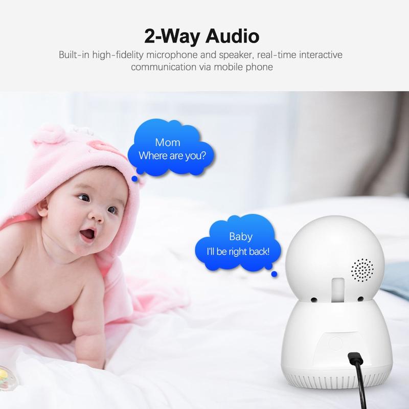- Surveillance de bébé : montez sur une étagère, activez le mode nuit en couleur et chuchotez bonne nuit via le haut-parleur.