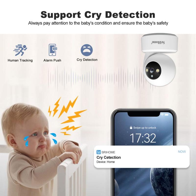 - Détection des pleurs de bébé - L'analyse audio intelligente vous avertit dès que votre enfant a besoin d'attention, ce qui fait du SH064 un babyphone à double usage.