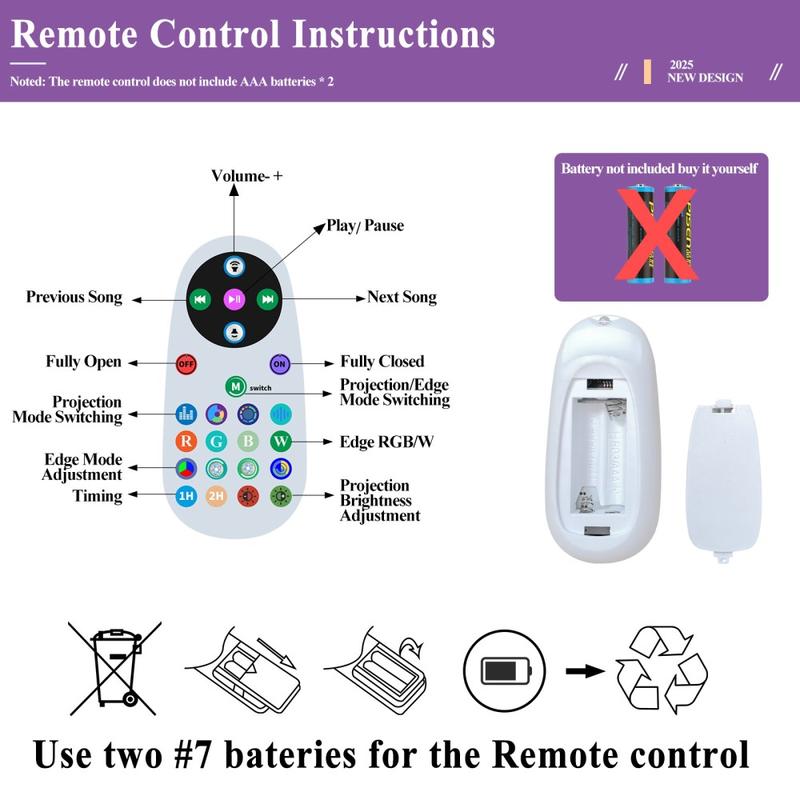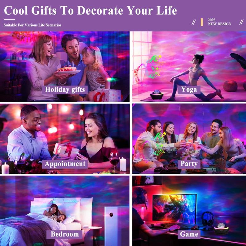 - Contrôle indépendant de la lumière - réglez la luminosité de la projection, faites basculer l'anneau RVB et réglez des minuteries d'extinction automatique de 1 h / 2 h.