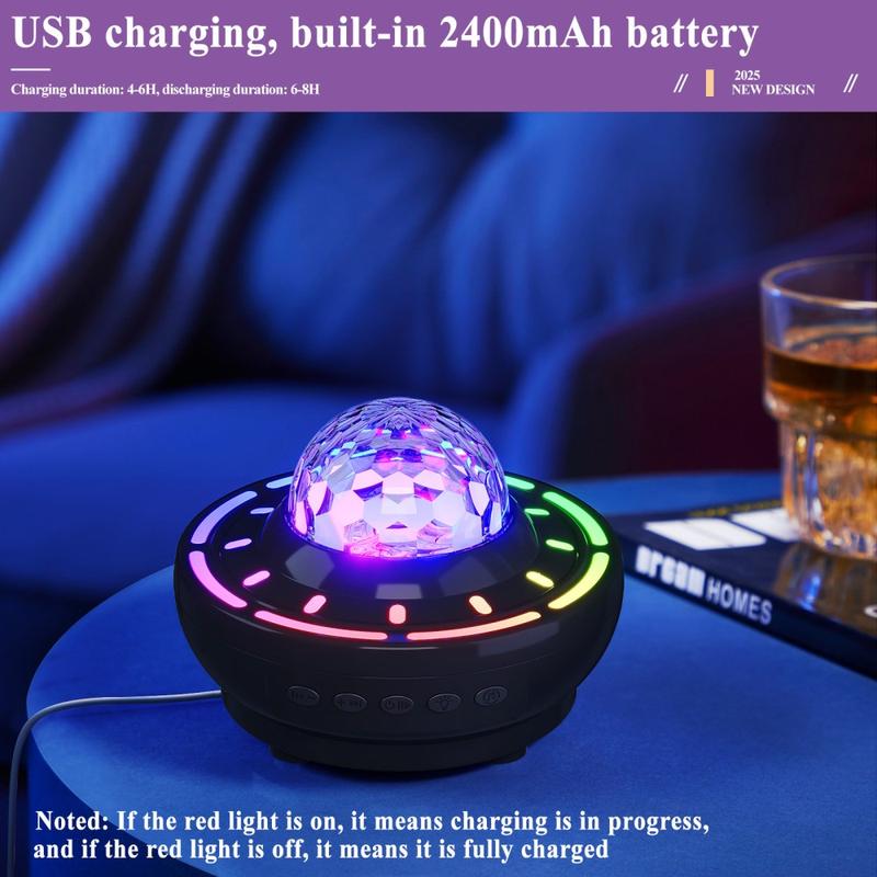Transformez n'importe quelle pièce en un salon cosmique. Le SSL001-C associe un projecteur immersif de ciel étoilé à un haut-parleur de 3 W compatible Bluetooth et à douze modes d'éclairage d'ambiance RVB, le tout alimenté par une batterie de 2 400 mAh pour huit heures d'ambiance sans fil.