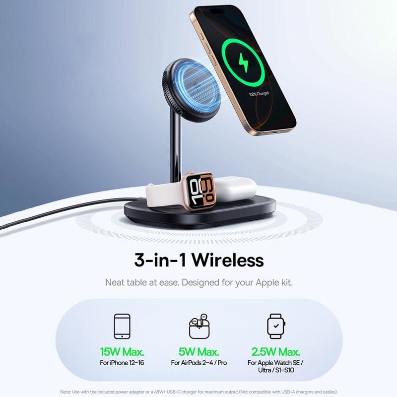 - Concentrateur d'énergie pour le bureau : Réduisez l'encombrement et restez productif en rechargeant sans fil trois appareils dans votre espace de travail.