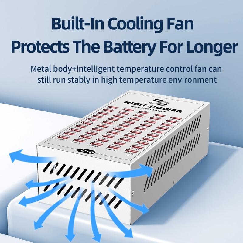 - 50 ports USB pour la recharge simultanée de plusieurs appareils dans des environnements commerciaux et industriels
