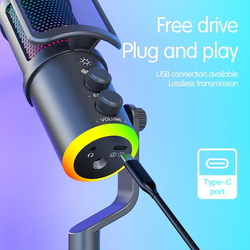 Microphone USB de jeu SU9 RGB - Microphone d'enregistrement de bureau avec filtre anti-pop, réduction du bruit et effets karaoké