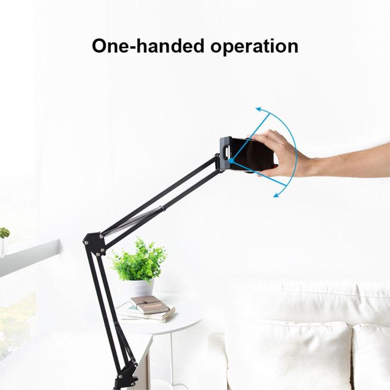 Le bras long réglable vous permet de personnaliser librement la hauteur, la distance et l'angle, ce qui le rend idéal pour regarder des vidéos, passer des appels vidéo, lire ou naviguer en gardant les mains libres.