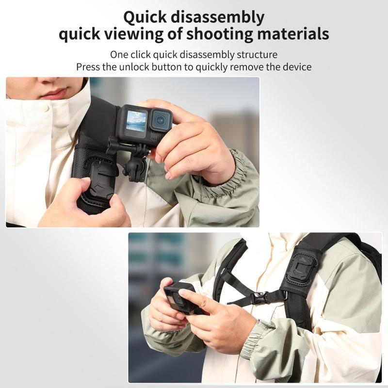 - Support pour sangle d'épaule de sac à dos permettant d'utiliser une caméra d'action en mode mains libres