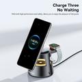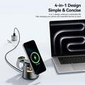 Désencombrez votre bureau ou votre table de chevet avec le support de charge magnétique sans fil 4-en-1 ESSAGER, conçu pour charger simultanément votre smartphone, votre smartwatch, vos écouteurs et un autre appareil. Une solution compacte qui vous permet de garder vos appareils essentiels alimentés et organisés en un seul endroit.