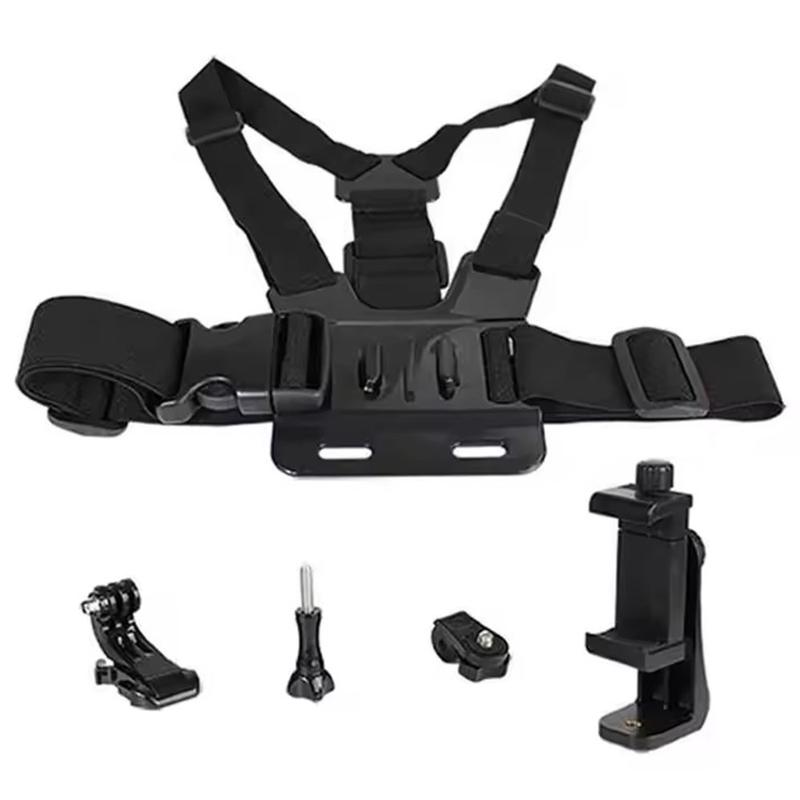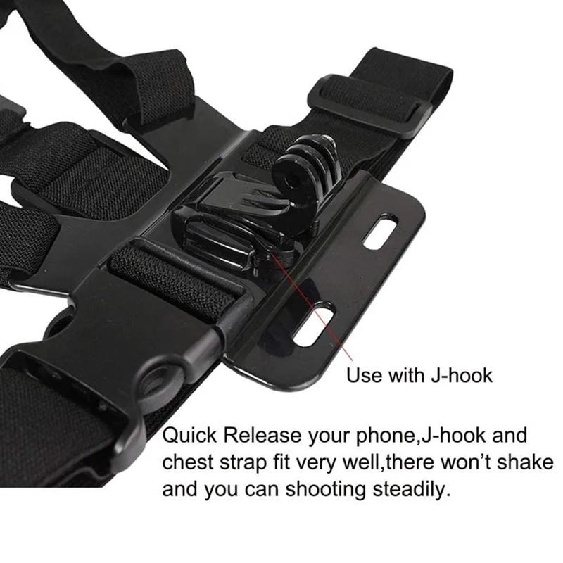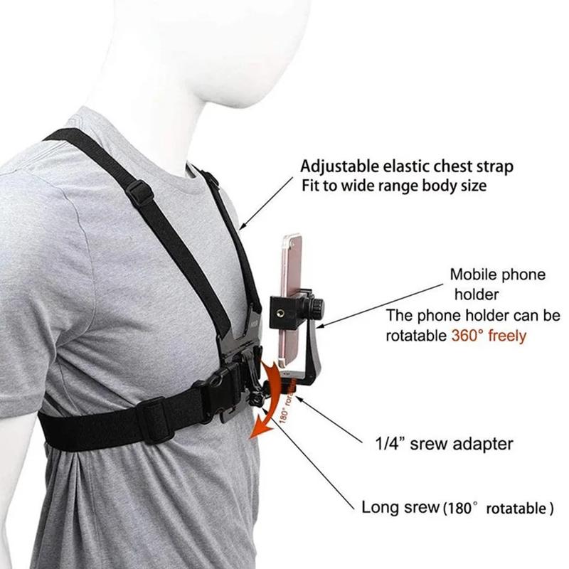 • Support de poitrine pour caméra d'action XD-27 avec support pour téléphone - Ceinture de poitrine en nylon réglable pour GoPro et smartphones