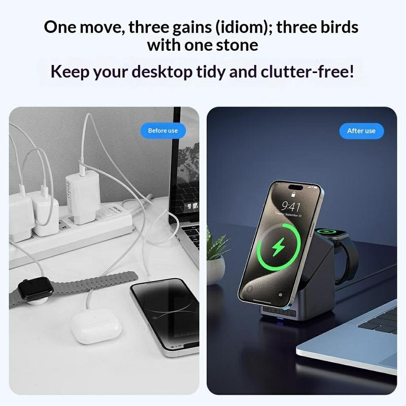 Les chargeurs sans fil 3-en-1 sont populaires car ils remplacent plusieurs chargeurs distincts par une seule station de recharge bien organisée. Les modèles dotés d'un alignement magnétique et d'angles de vision réglables sont particulièrement pratiques pour une utilisation quotidienne sur un bureau ou à côté du lit.
