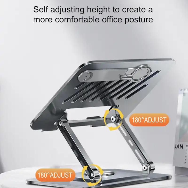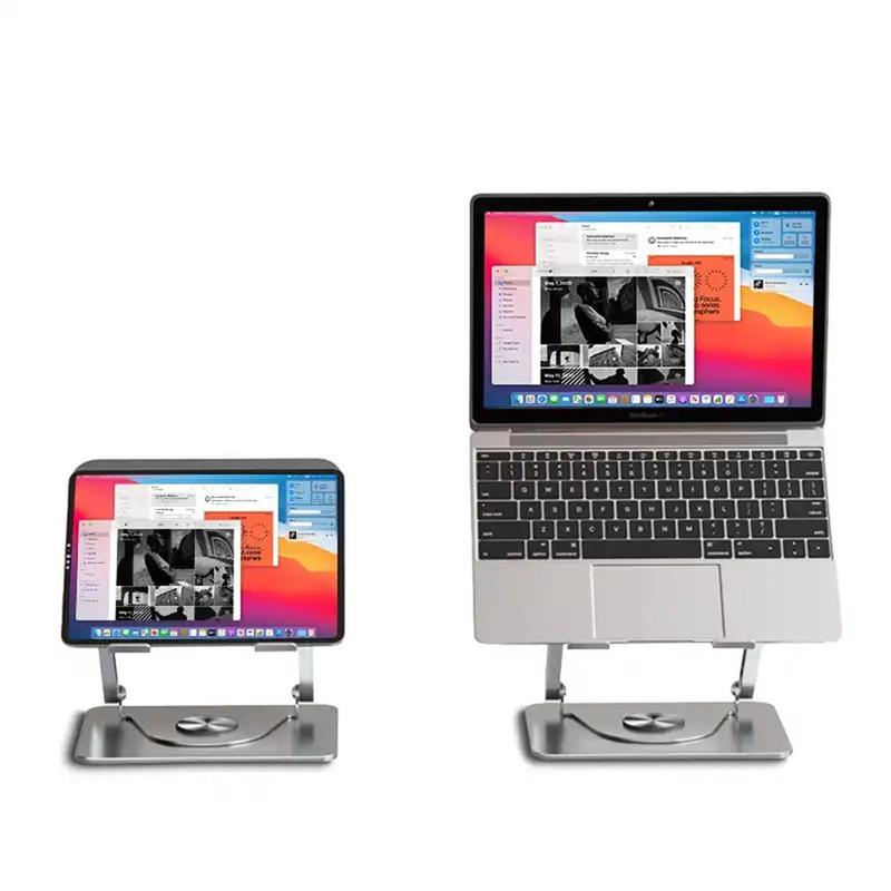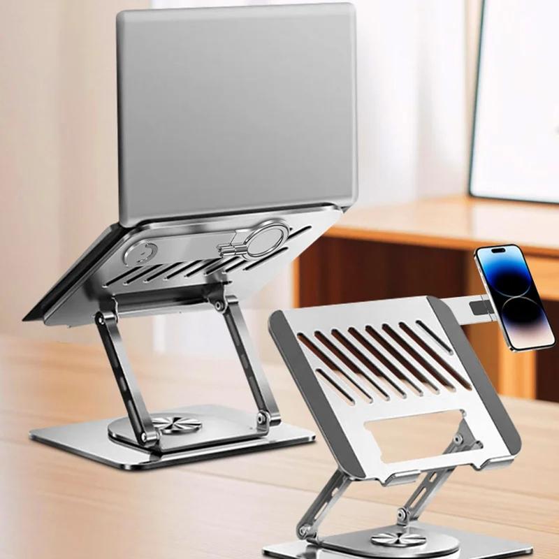 Support pour ordinateur portable rotatif à deux bras en acier au carbone avec support magnétique pour téléphone - Support réglable en hauteur pour ordinateur portable et tablette (jusqu'à 15,6")