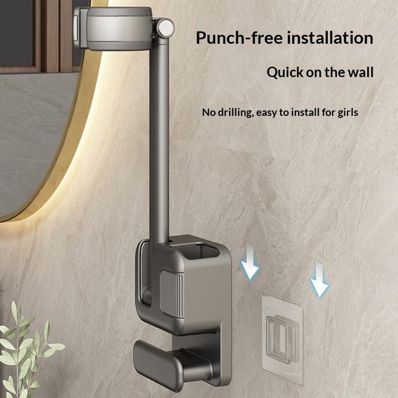 Simplifiez votre routine capillaire quotidienne et gardez votre salle de bains mieux rangée grâce à ce support réglable pour sèche-cheveux mains libres. Conçu pour un montage mural pratique sans perçage, ce support de rangement pratique vous offre un emplacement sûr pour votre sèche-cheveux tout en vous libérant les mains pour faciliter le coiffage, le brossage ou la séparation de vos mèches.