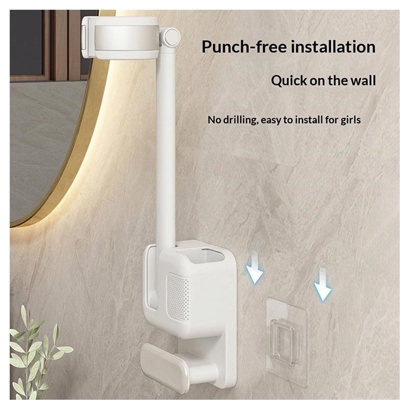 Simplifiez votre routine capillaire quotidienne et gardez votre salle de bains mieux rangée grâce à ce support réglable pour sèche-cheveux mains libres. Conçu pour un montage mural pratique sans perçage, ce support de rangement pratique vous offre un emplacement sûr pour votre sèche-cheveux tout en vous libérant les mains pour faciliter le coiffage, le brossage ou la séparation de vos mèches.