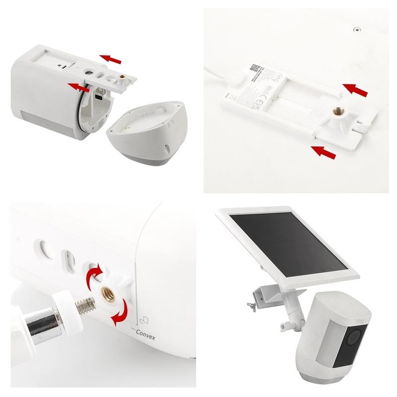 Équipé de bases d'adaptation interchangeables, le support est compatible avec les dispositifs populaires d'Arlo, d'EufyCam et de Ring, y compris les têtes de caméra et les panneaux solaires correspondants. Il s'agit donc d'un choix polyvalent pour les installations de sécurité mixtes ou améliorées.