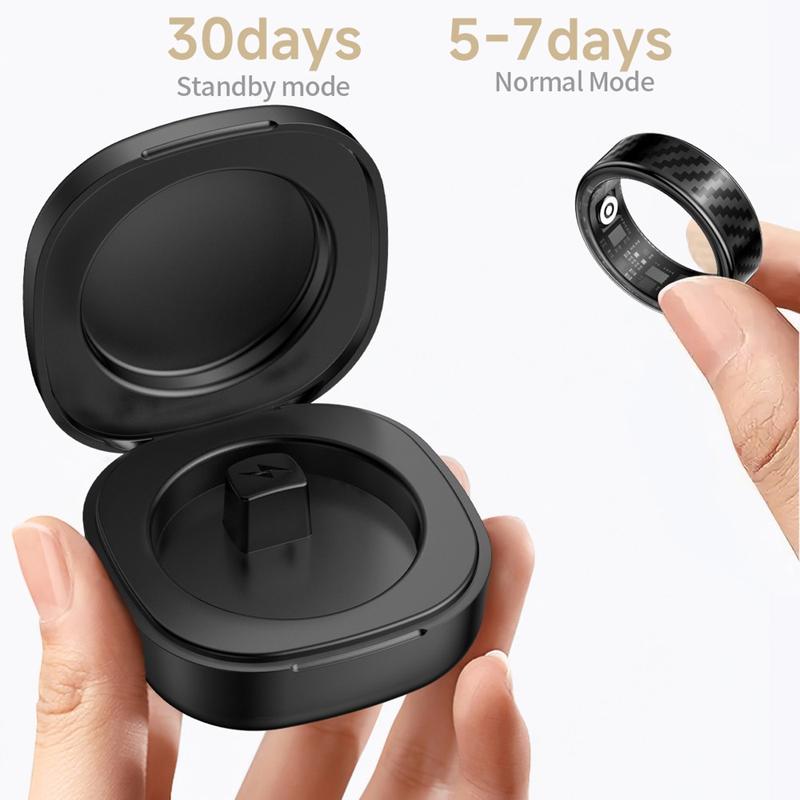 SY02 Bague intelligente en fibre de carbone - Suivi du sommeil, de l'oxygène sanguin et de la fréquence cardiaque avec étui de chargement sans fil