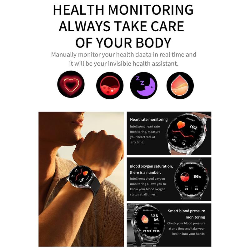 Profitez des appels mains libres, d'une musique immersive et d'un suivi de la santé 24 heures sur 24 dans un seul appareil compact. La T97 associe un écran haute résolution de 1,39 pouce à des écouteurs Bluetooth amovibles qui se rechargent à l'intérieur de la montre, vous offrant ainsi une véritable commodité tout-en-un pour le travail, l'entraînement et les voyages.