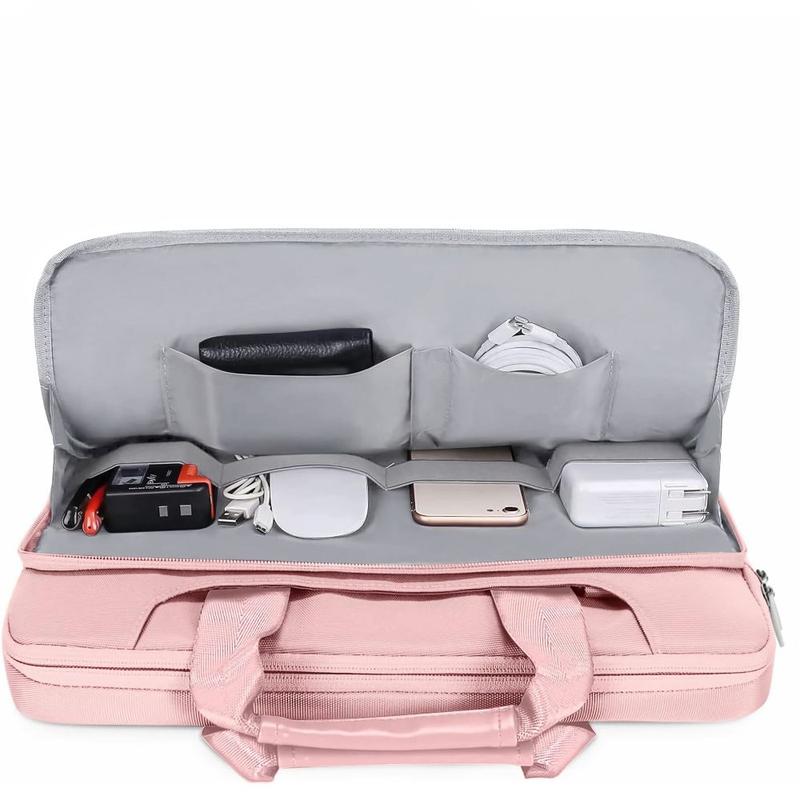 - Conception spacieuse et organisée : Comprend un compartiment principal spacieux pour les ordinateurs portables, une poche frontale zippée pour les petits objets tels que les chargeurs et les câbles, et des séparateurs internes pour organiser les documents, les smartphones et les accessoires.