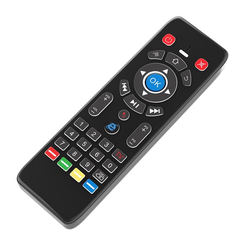 - Fonctions de contrôle : souris aérienne à gyroscope, pavé tactile, clavier QWERTY, apprentissage IR