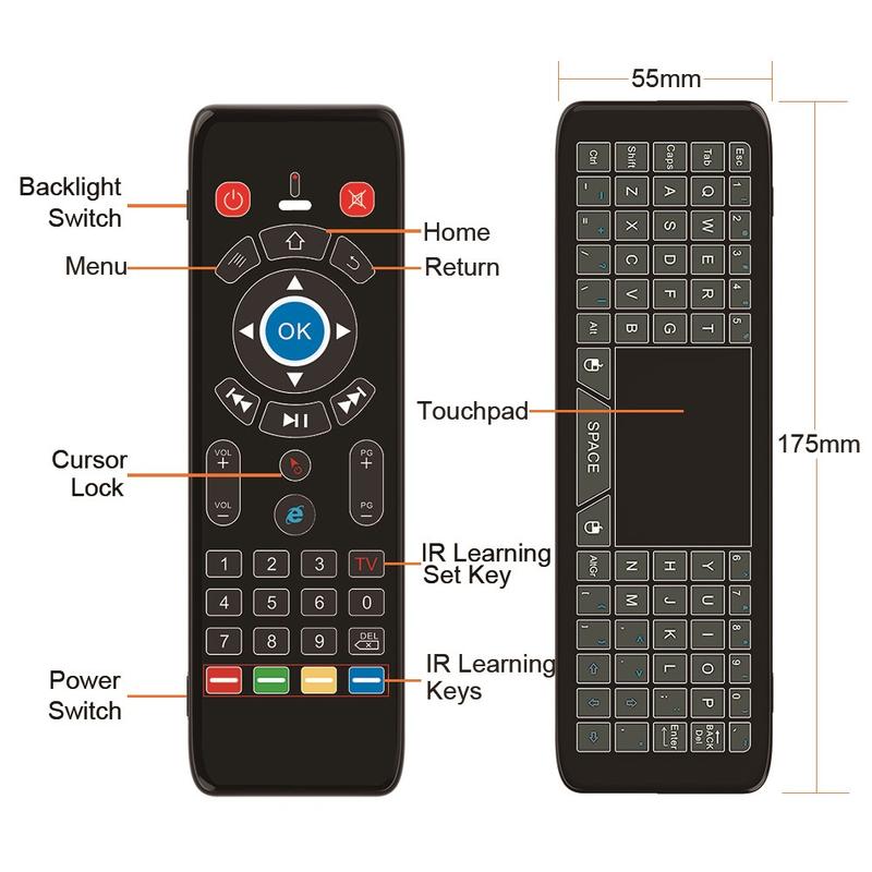 Le mini-clavier intégré à 98 touches permet une saisie de texte rapide et confortable, idéale pour effectuer des recherches, saisir des mots de passe, discuter ou naviguer sur les téléviseurs intelligents et les boîtiers multimédias.