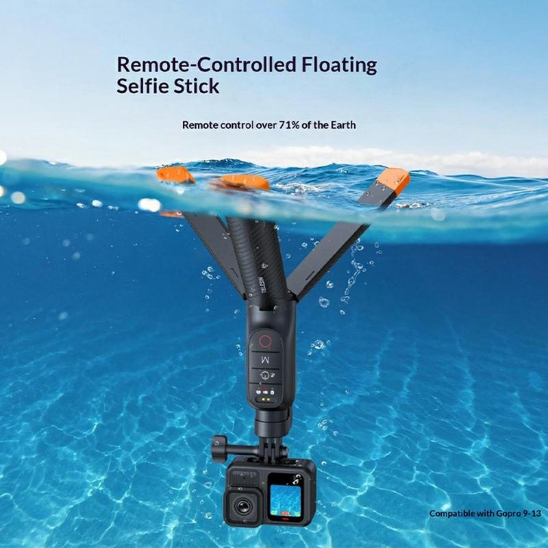 • Telesin S1-TSS-07 : perche à selfie flottante / trépied sous-marin extensible avec télécommande Bluetooth pour GoPro Max/Hero13/Hero12/Hero11/Hero10/Hero9